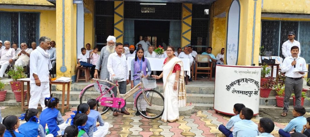 On Independence Day 2025 Dr Garima Singh Foundation honoured Km Anshu (Resident of village Manpur) student of class 10th of Sri Sanskrit Inter College Eitmadpur, Meerut who topped school in UP Board Examination 2025, by donating her a Bicycle by its Director Mrs Beena Teotia, Principal of Sri Sanskrit Inter College.